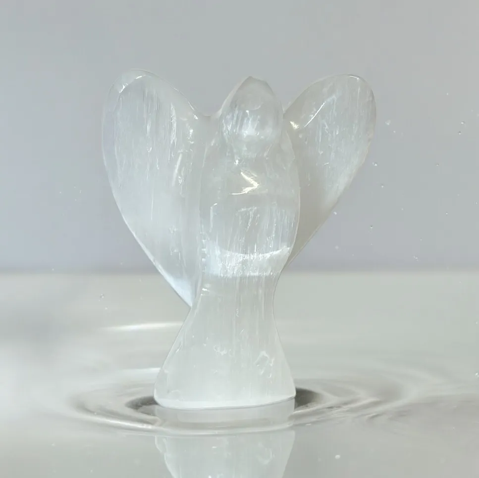 - Puurst Mogelijke Materiaal: Gemaakt van hoogwaardig seleniet, bekend om zijn zuiverende en kalmerende eigenschappen. Elk engelbeeld is uniek, met natuurlijke nuances die de schoonheid van het kristal benadrukken.