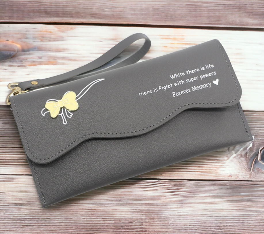 Ontdek de perfecte fusie van stijl en functionaliteit met onze grijze portemonnee, verfraaid met een sierlijk strikje. Deze portemonnee is niet alleen een modieus accessoire, maar ook een subtiele uiting van de diepere lagen van uw persoonlijkheid.
