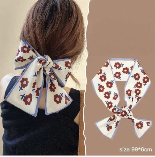 Dit Sjaaltje met Blauwe en rode Bloemen kan op verschillende manieren worden gedragen: als een haarband, een strik of een decoratieve accessoire voor een paardenstaart of een vlecht. Het is geschikt voor verschillende haarstijlen en gelegenheden, van casual tot feestelijk.