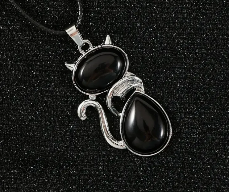 De Obsidiaan Kat Ketting is een stijlvol sieraad dat elegantie en symboliek combineert. Het middelpunt van de ketting is een hanger in de vorm van een kat, vervaardigd uit diepzwarte obsidiaan. De glanzende, donkere steen geeft het sieraad een mysterieus en verfijnd karakter. Het zilverkleurige metaal van de ketting vormt een mooi contrast en maakt het ontwerp tijdloos, passend bij zowel casual als formele outfits.