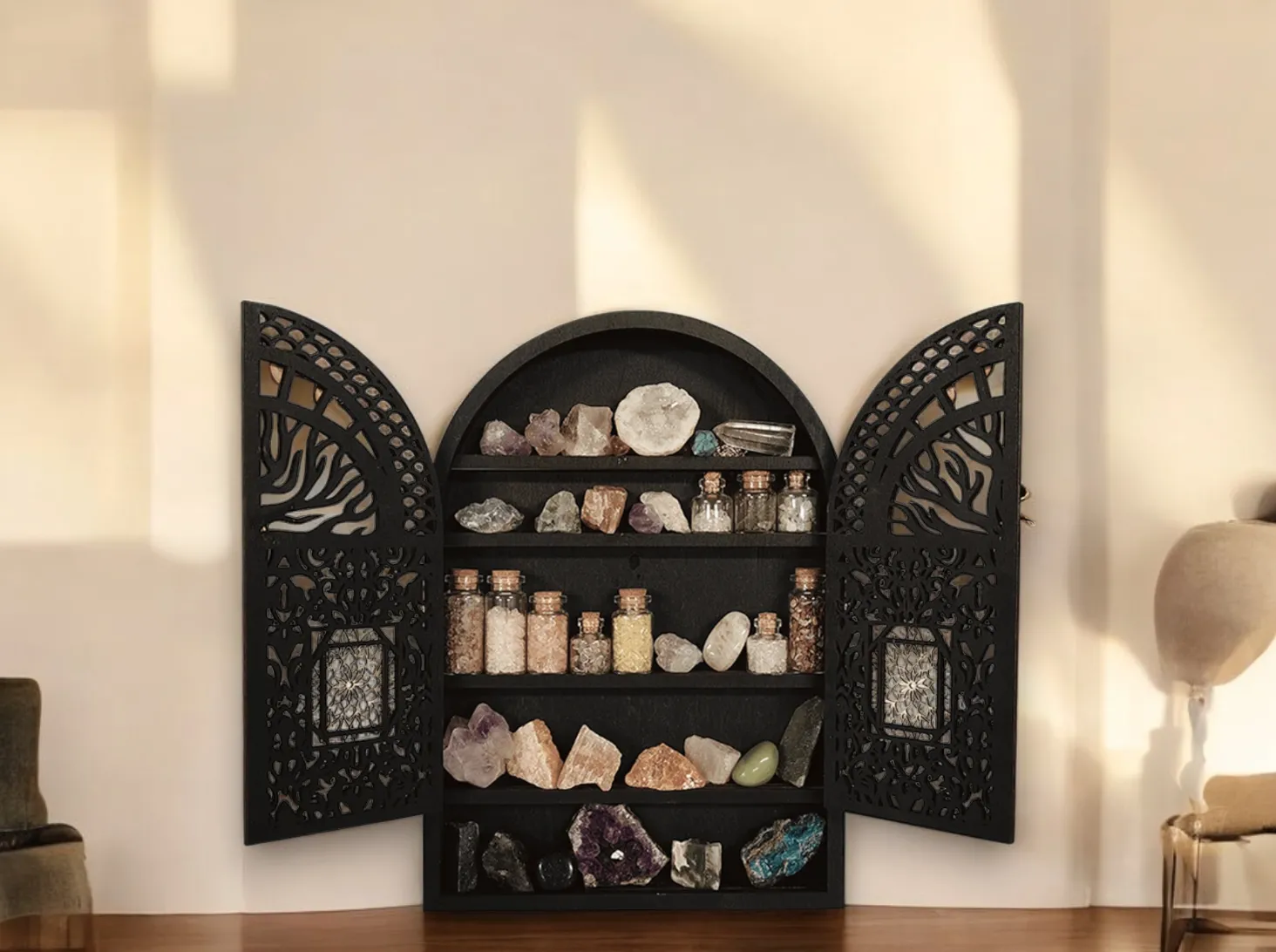 Dit altaar is ideaal voor het opzetten van een meditatiehoek, waar je dagelijks kunt afstemmen op je intenties en de energie van je kristallen kunt versterken. De verschillende planken bieden voldoende ruimte om je collectie te organiseren en te presenteren, zodat je gemakkelijk toegang hebt tot de helende krachten van elke steen. Plaats je favoriete kristallen, wierook, en andere spirituele hulpmiddelen op het altaar om een serene en energetisch geladen omgeving te creëren.