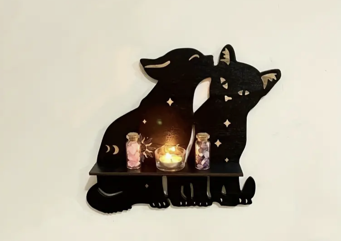 De Kittens Wandplank is ideaal voor wie houdt van een combinatie van spirituele symboliek en heksachtige esthetiek. Het creëert een warme en uitnodigende sfeer, perfect voor dagelijks gebruik of voor het versterken van rituelen. Voeg deze magische wandplank toe aan je interieur en geef je huis een stukje mystiek en charme.