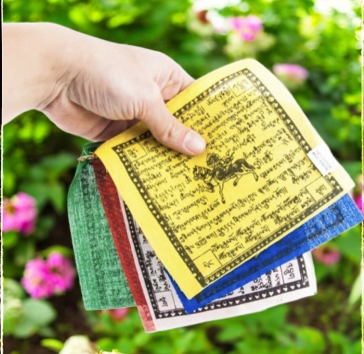 De set van vlaggen is ideaal voor gebruik in je tuin, op je balkon of zelfs binnen in je huis. Ze creëren een serene, harmonieuze sfeer, die uitnodigt tot meditatie, reflectie en rust. De vrolijke kleuren en het symbool van de vijf elementen – lucht, vuur, water, aarde en ruimte – brengen balans en harmonie in je ruimte, terwijl de gebeden op de vlaggen zorgen voor een continue stroom van zegeningen.