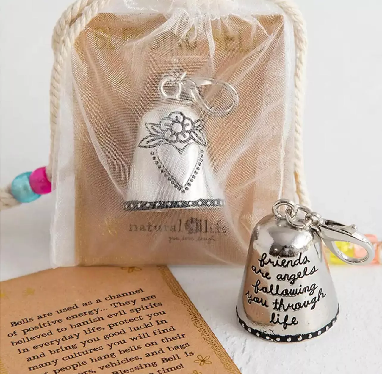 De Engelen Zegenbel sleutelhanger is een prachtig spiritueel sieraad dat helpt om je spirituele energie te verhogen en een diepe verbinding met de engelen te ervaren. Deze zilverkleurige bel heeft een helder geluid en is versierd met symbolen van liefde, zoals een hart en een bloem. Het geluid van de bel creëert rust en harmonie, en nodigt engelen uit om positieve energie in je leven te brengen.