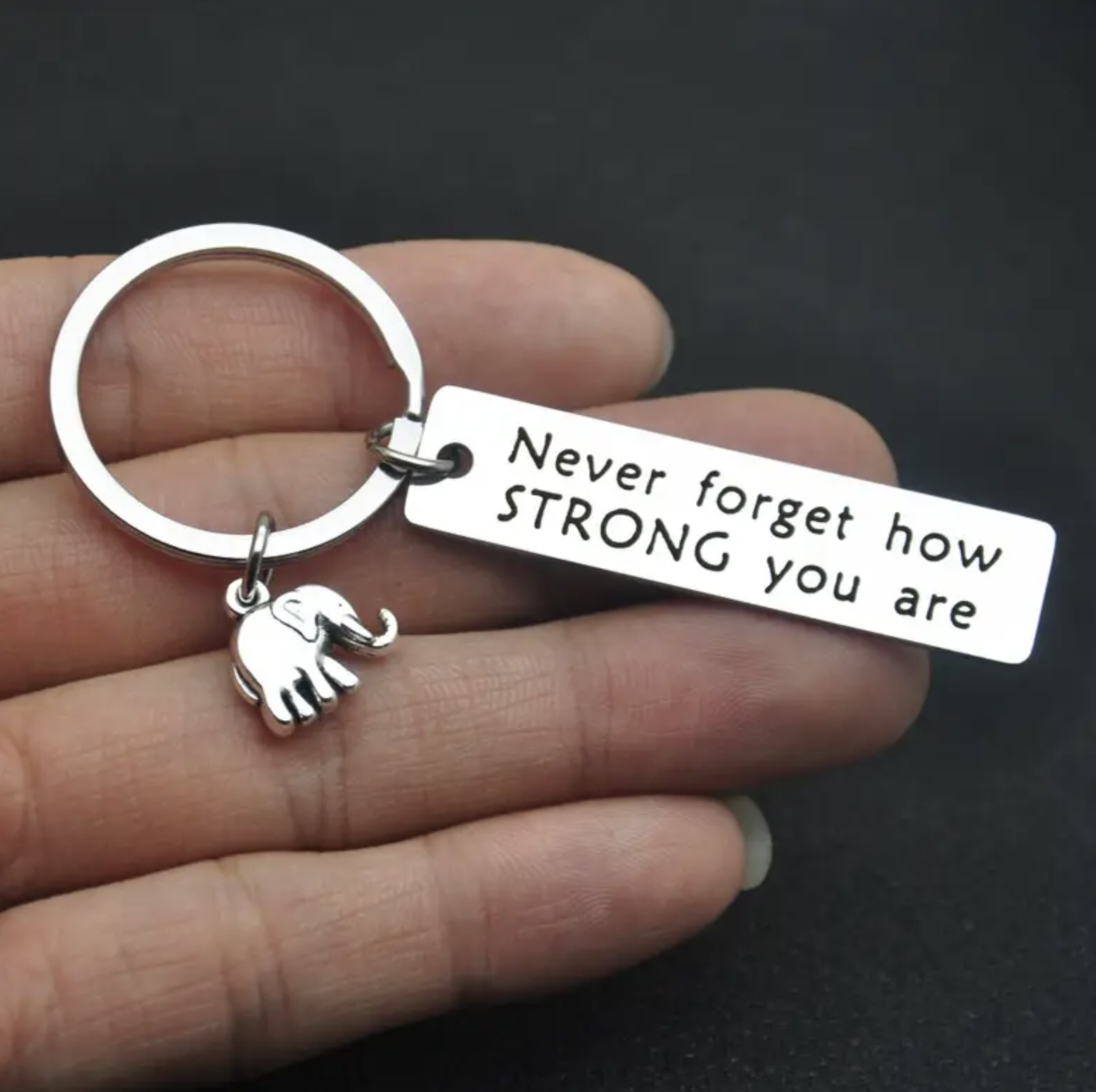 Deze Zilverkleurige Sleutelhanger Positieve Boodschap en Olifant is niet zomaar een accessoire; het is een talisman van geluk, een bron van inspiratie en een symbool van bescherming. De glinsterende zilveren tint vangt het licht op en straalt een tijdloze elegantie uit, terwijl de gegraveerde positieve boodschap dient als een baken van hoop en optimisme in het dagelijks leven.